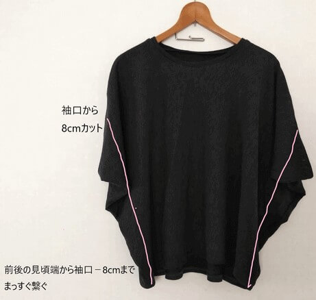 今回作ったアレンジ後のTシャツは袖口がここです。